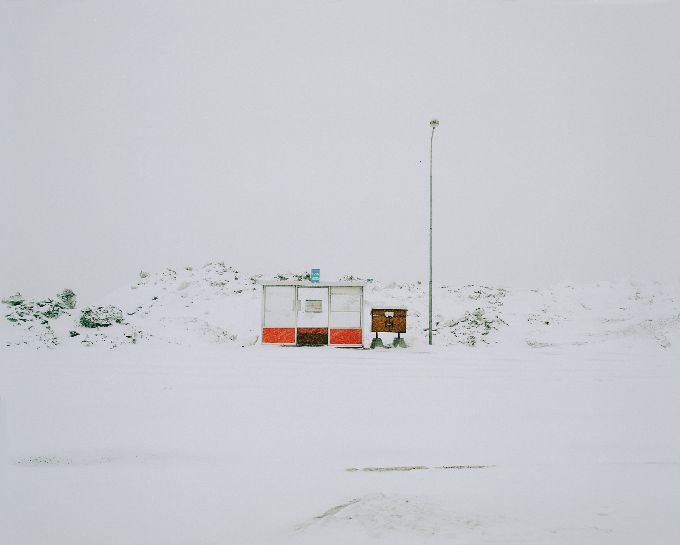 }“Don't we see it in the sense of the everyday that permeates her work, quietly contradicting the allure of a more extreme reading? Carefully gritted roads. Neon lights of convenience. A bus stop; bins; signage.